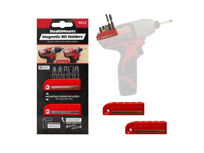 StealthMounts Bit Holders for Milwaukee M12 are the perfect addition for your drill or impact driver. This bitholder keeps your bits together, organised and on your drill or impact driver. Our Milwaukee M12 Bit Holders come in a pack of 2. Each magnetic bitholder can hold up to 5 bits allowing you to access your most common drill bits ensuring that you never lose track of them. The appropriate screw for mounting to most of your Milwaukee M12 tools is provided. The magnet allows the bitholder to be mounted to the tool at different angles, extra screws can also be stored on the side of the magnet. Bits won't fall out even when the holder is mounted upside down. Made in Great Britain our Milwaukee M12 Bit Holders are made with extremely durable injection moulded ABS plastic. This Bit Holder will fit most Milwaukee M12 Tools of generation 1, 2 & 3. If you are looking to buy a Bit Holder to fit your new generation four tool or the 4 in 1 drill driver set, please purchase the StealthMounts Bit Holder for Milwaukee M18.
